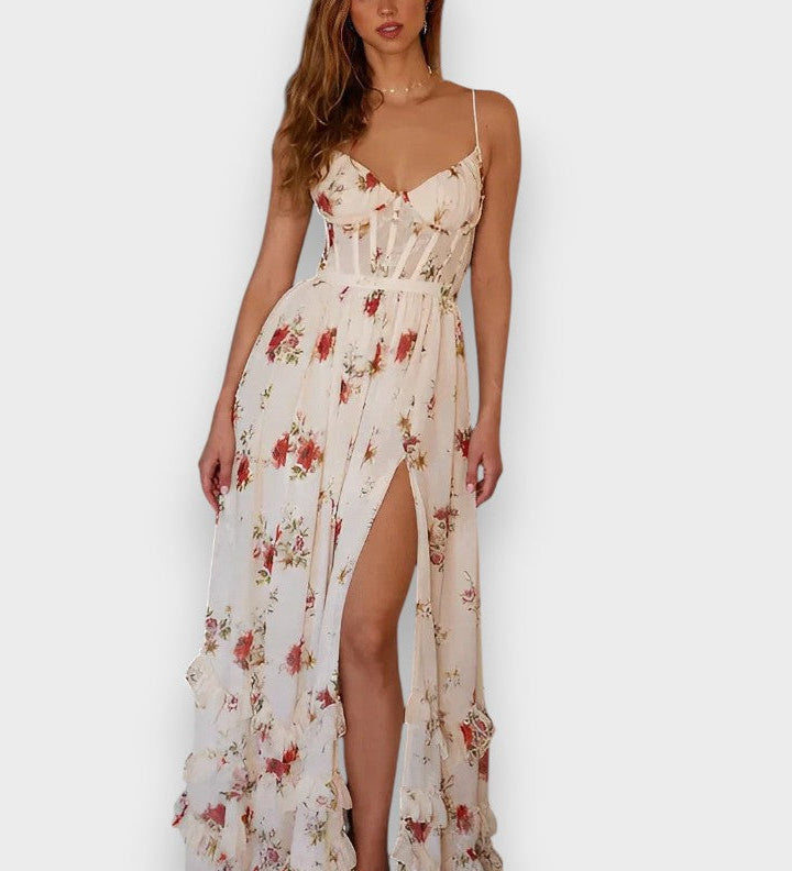 Floraria - Dlouhé šaty s halterem a odhaleným zadním dílem