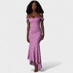 - Boční drapovaná sukně: Vizuálně zeštíhluje siluetu.