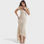 - Úzký korzetový střih: Zvýrazňuje poprsí a definuje pas.