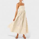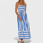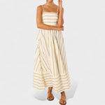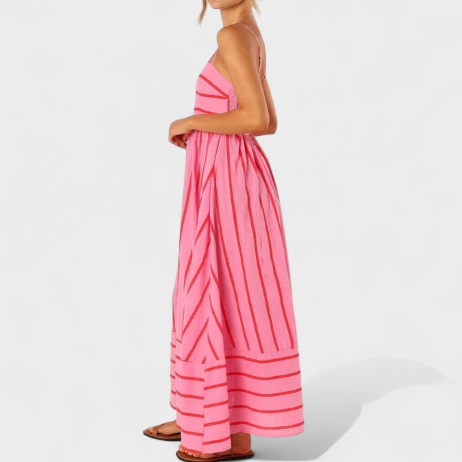 Isabel - Dlouhé pruhované šaty s elegantním designem