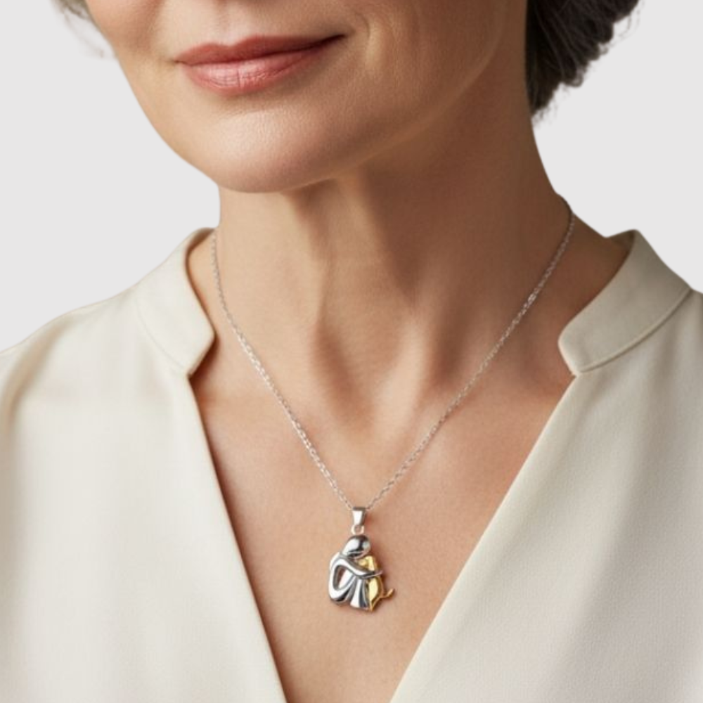 Tento elegantní náhrdelník s přívěskem ve tvaru psa představuje hluboké pouto mezi člověkem a jeho čtyřnohým přítelem. Jeho nadčasový design je jemný, ale emotivní – ideální pro ty, kteří nosí své mazlíčky ve svém srdci.