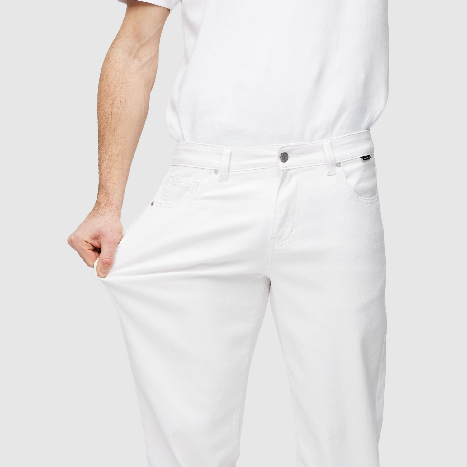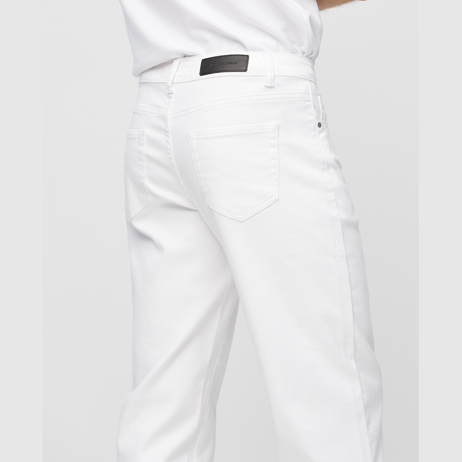Objevte tyto džíny s normálním střihem v elegantní bílé, ideální pro každodenní i slavnostní příležitosti. Vyrobené z speciálně tkané bavlněné látky, které je pohodlné a elastické, zaručují komfort bez průhlednosti.
