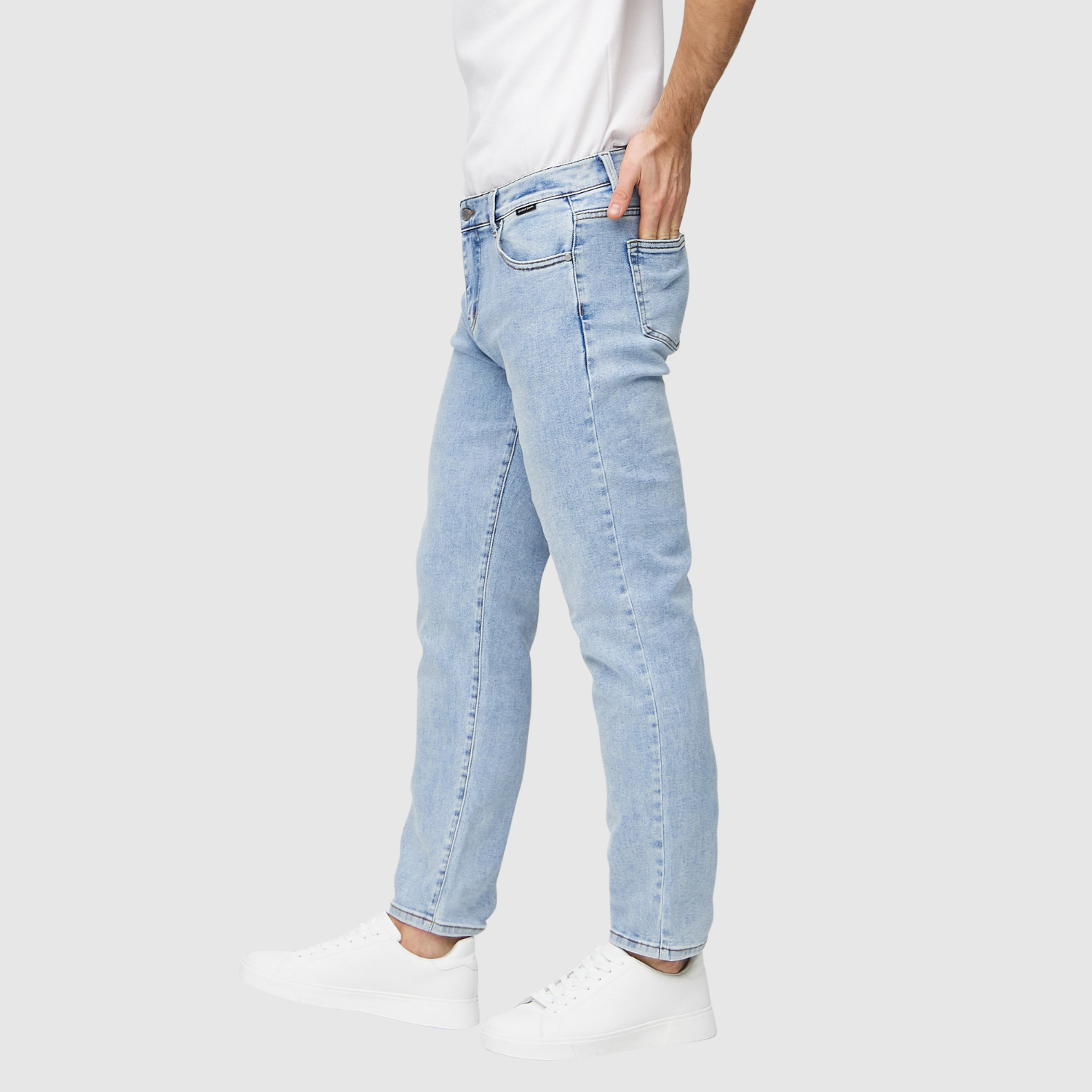 Tyto světle modré džíny s normálním siluetem nabízejí neformální a moderní vzhled. Vyrobeny z elastického denimu, který spojuje klasický styl s pohodlím a volností pohybu po celý den. Perfektní pro každodenní nošení a uvolněné outfity.