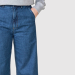 Objevte široké džíny, které spojují pohodlí a eleganci v jednoduchém designu. Tmavě modré stone wash dodává sofistikovaný pocit, ideální pro každodenní nošení i více upravené vzhledy.