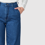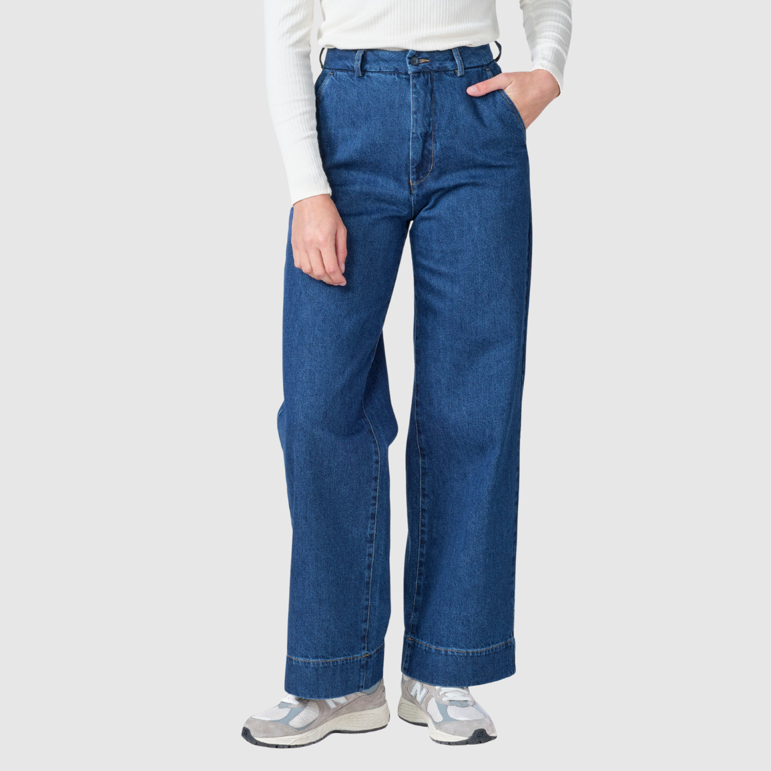 Objevte naše džíny s vysokým pasem v tmavém praní, které spojují elegantní vzhled s pohodlným střihem. Hluboký modrý odstín dodává nadčasový styl, ideální pro jakoukoli příležitost, od dnešního dne až po večerní akce.