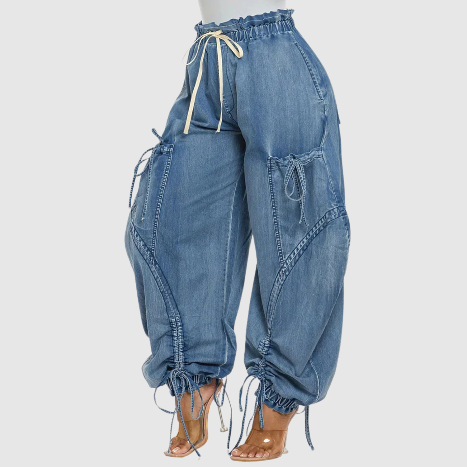 Objevte naše baggy džíny, které kombinují neformální a moderní vzhled. S unikátními regulovatelnými tkaničkami a pohodlným střihem jsou ideální volbou pro váš každodenní outfit.