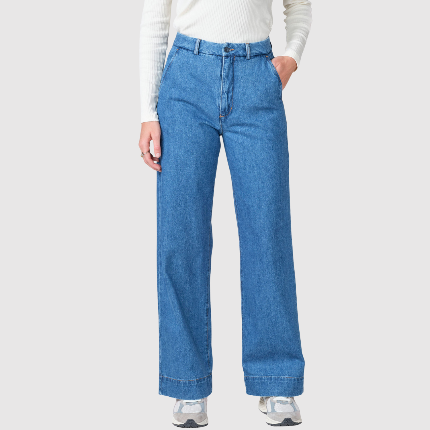 Vytvořeno pro lichotivou siluetu! Tyto džíny s vysokým pasem nabízejí elegantní, prodloužený vzhled. Světle modrý stonewash dodává svěží a moderní akcent, zatímco široký střih zajišťuje pohodlí po celý den. Základní kousek každého šatníku!