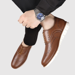 Objevte derby boty, které spojují nadčasový perforovaný design s moderním komfortem. Perforované detaily dodávají elegantní vzhled, zatímco flexibilní podrážka zajišťuje pohodlné nošení po celý den. Ideální volba pro kancelář i neformální příležitosti.