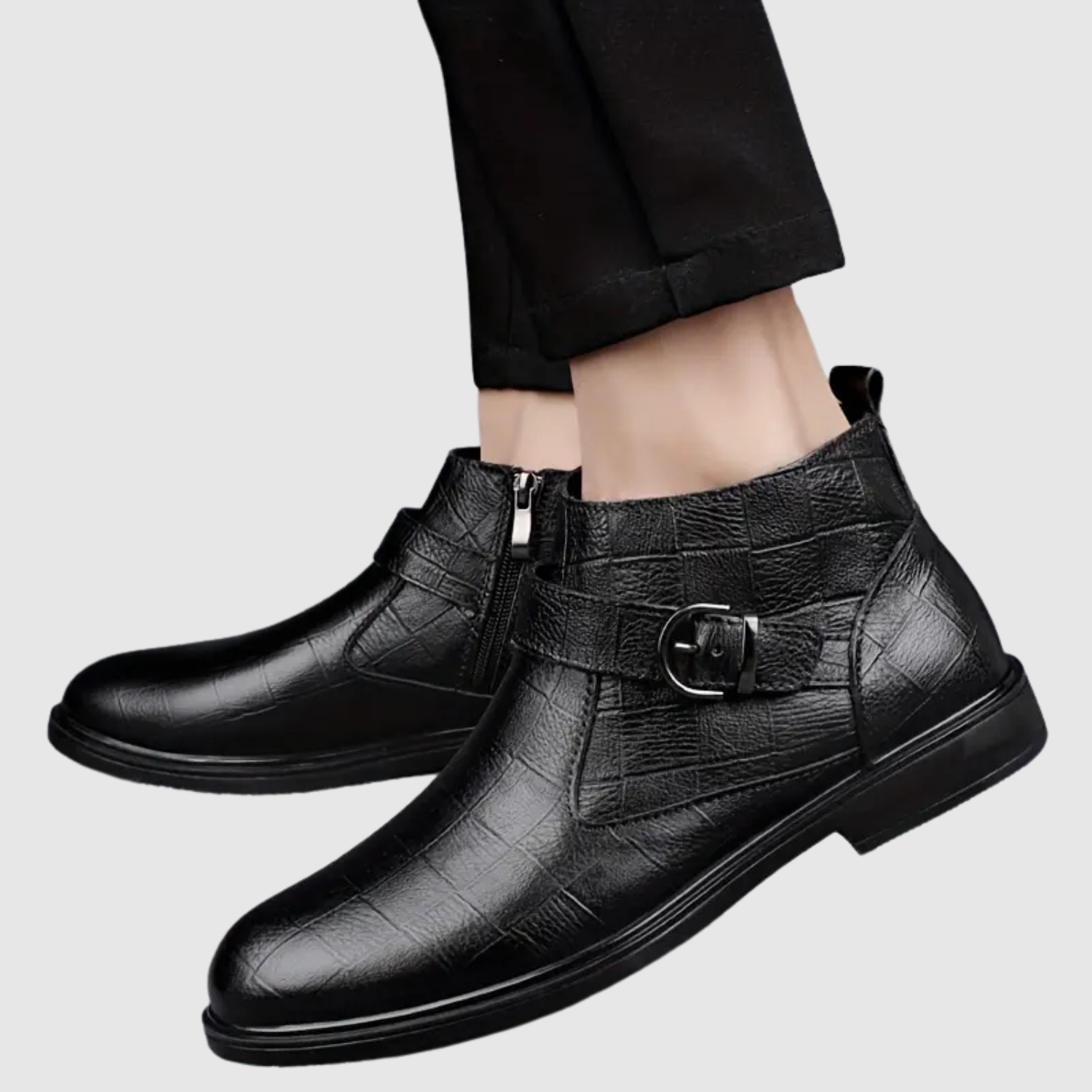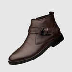 Boty Henrik s přezkou jsou ideální volbou pro muže, kteří si cení vytříbené jednoduchosti. Hladký kožený povrch a elegantní přezka dodávají nadčasový a rafinovaný vzhled, který se hodí jak pro formální příležitosti, tak pro každodenní nošení.