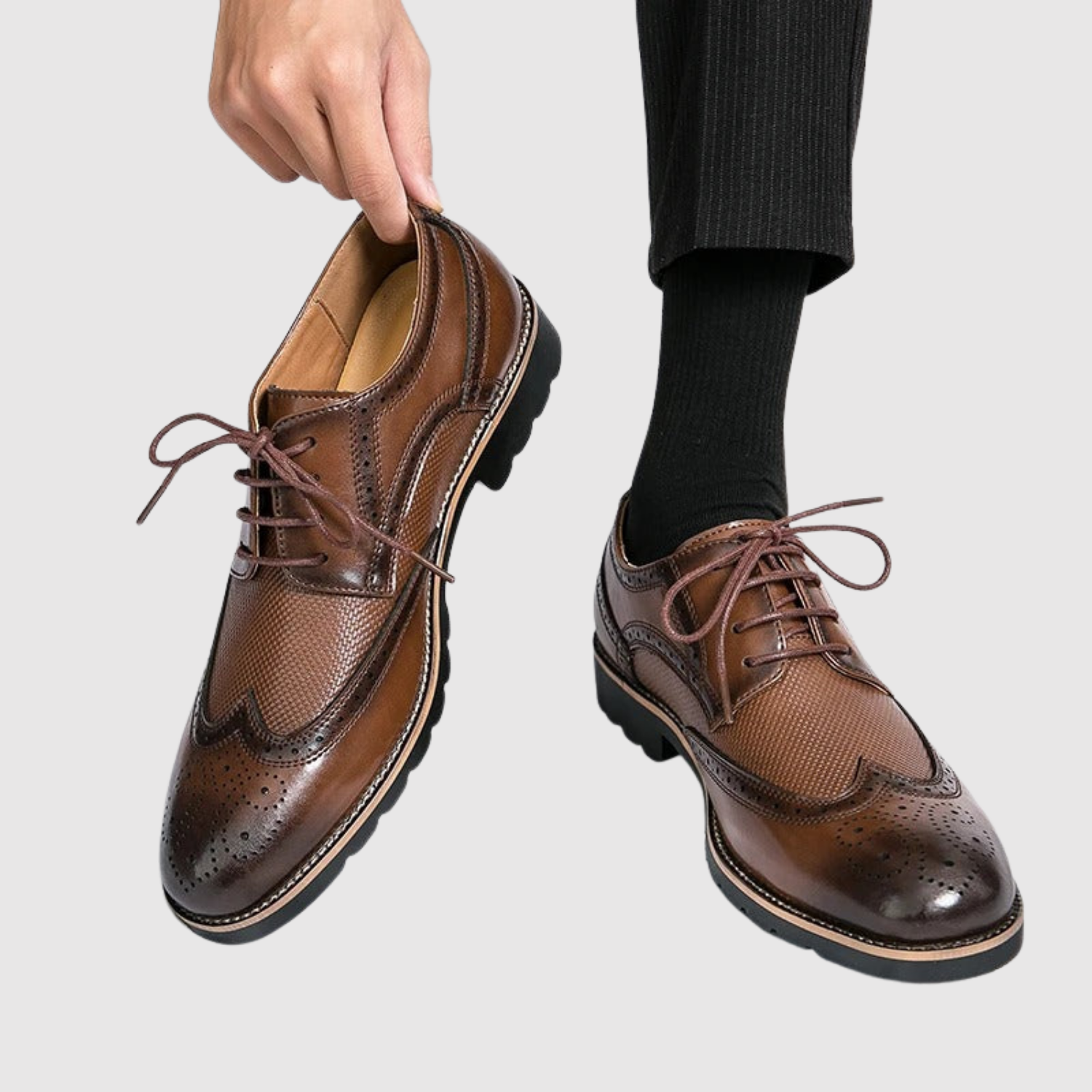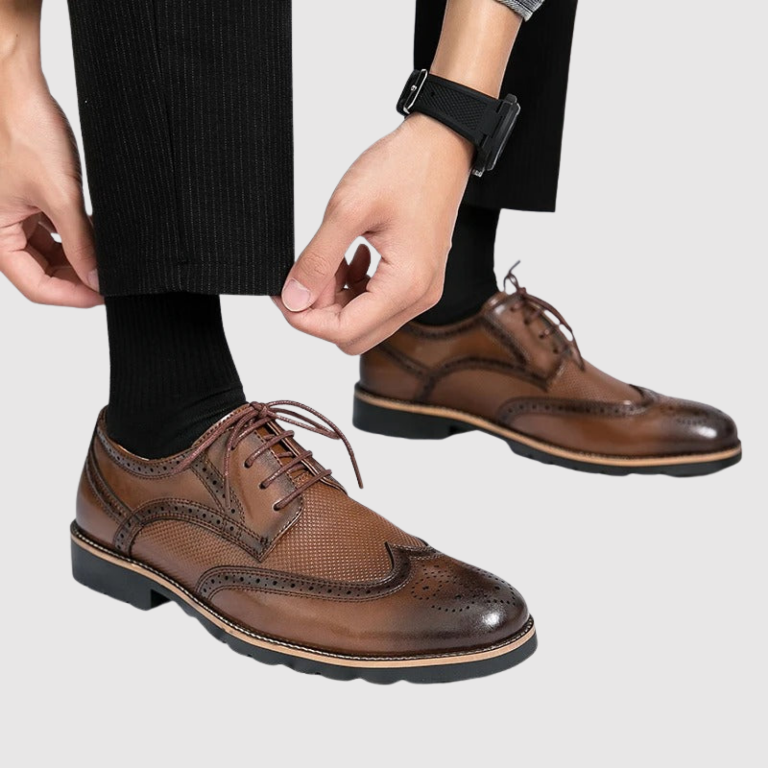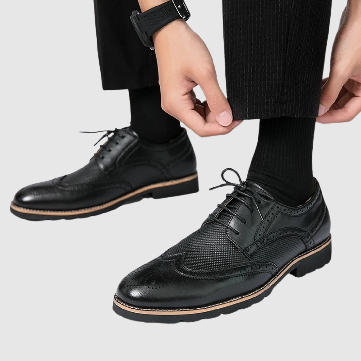 Objevte naše klasické pánské boty, vyrobené z kvalitní kůže a zdobené elegantními brožovými detaily, které přinášejí sofistikovaný a nadčasový vzhled. Tyto boty jsou ideální pro obchodní schůzky, formální příležitosti a stylové každodenní outfity.