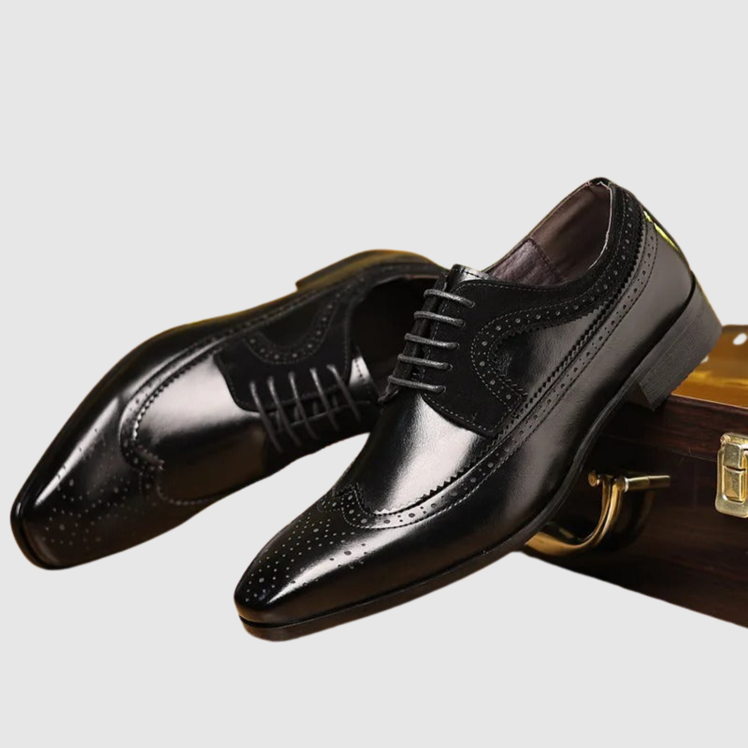 Objevte klasické pánské boty vyrobené z lesklé kůže, zdobené diskrétními vyšívanými detaily. Špičaté linie siluety a pohodlný tvar je činí ideálními pro obchodní schůzky a speciální události.