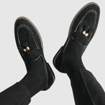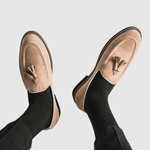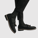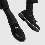 Objevte naše loafers, které spojují klasický design s moderním akcentem. Měkký semišový kožený povrch zajišťuje komfort a prodyšnost, zatímco kovová spona dodává nádech rafinovanosti.