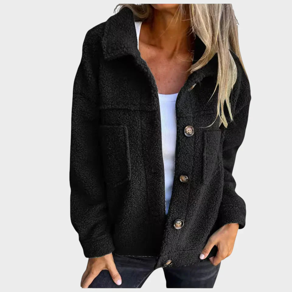 Marija – Krátký klasický kabát s fleecovou podšívkou a teddy límcem
