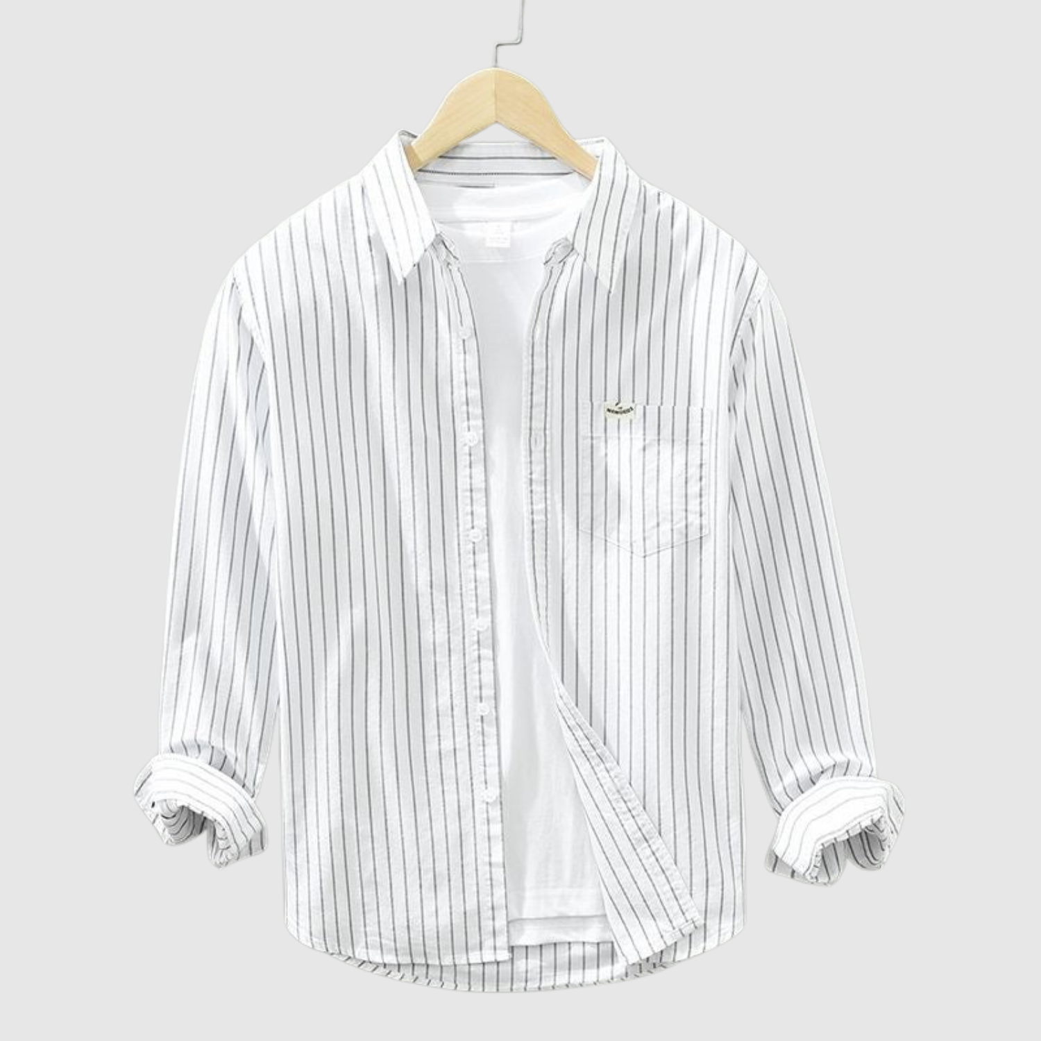 Přijměte eleganci pobřeží s Pletenou košilí. Tato pruhovaná košile bez námahy spojuje styl s neformální elegancí.