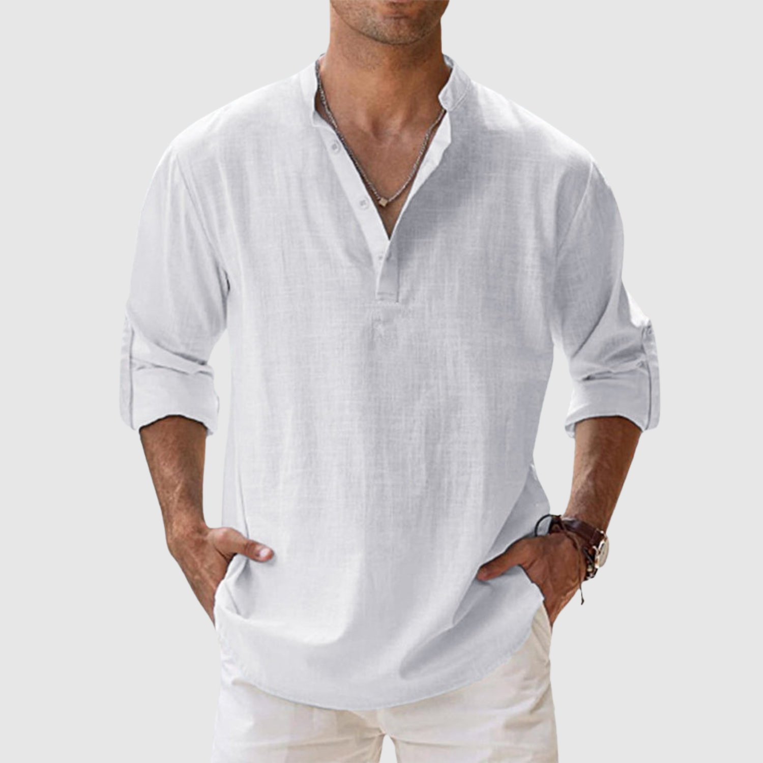 Víceúčelová lněná košile, která spojuje pohodlí a ležérní eleganci.