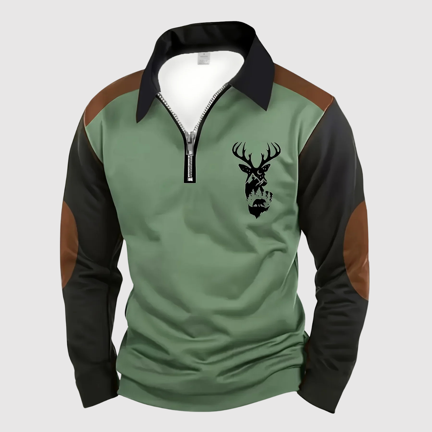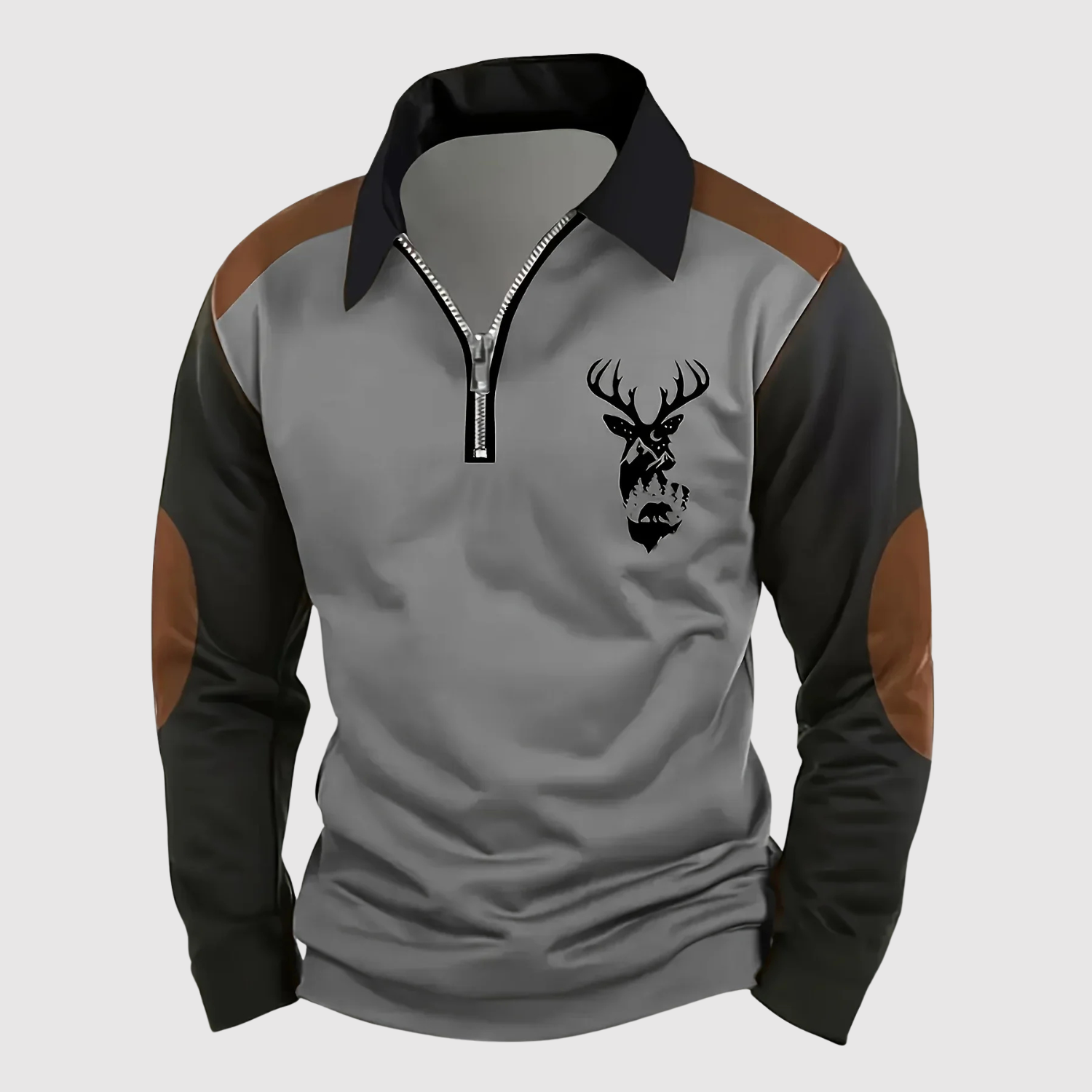 Adrian - Sportovní elegantní svetr s zipem a jelením vzorem