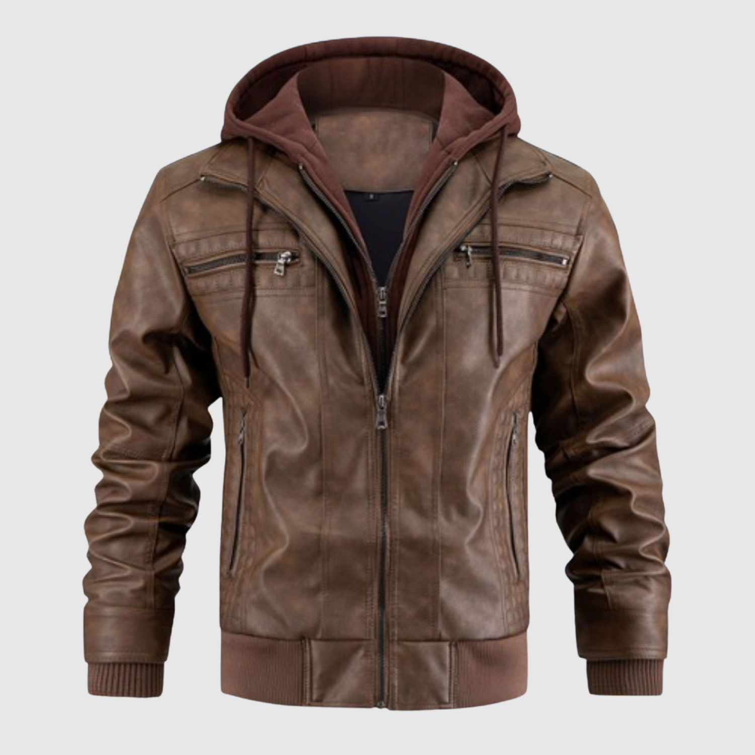 Dorian – Kožená bunda s kapucí a sportovním designem