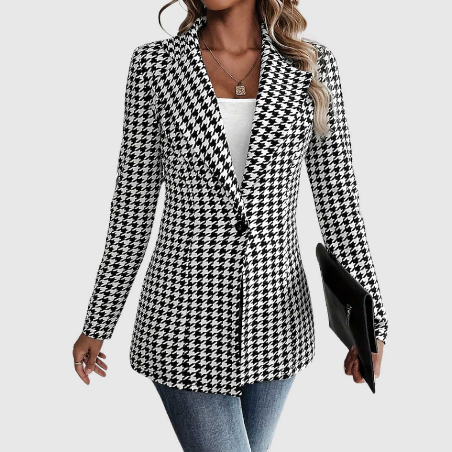 Tento blazer s kostkovaným vzorem dodává sofistikovaný vzhled, který pozvedne každé oblečení. Strukturovaný střih v kombinaci s klasickým modelem z něj činí oblíbený kousek v šatníku.