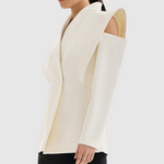 Toto sako je navrženo s ostrými liniemi a výraznými rameny, což mu dodává moderní a elegantní vzhled. Nadčasová bílá barva usnadňuje kombinaci s formálními i neformálními outfity.