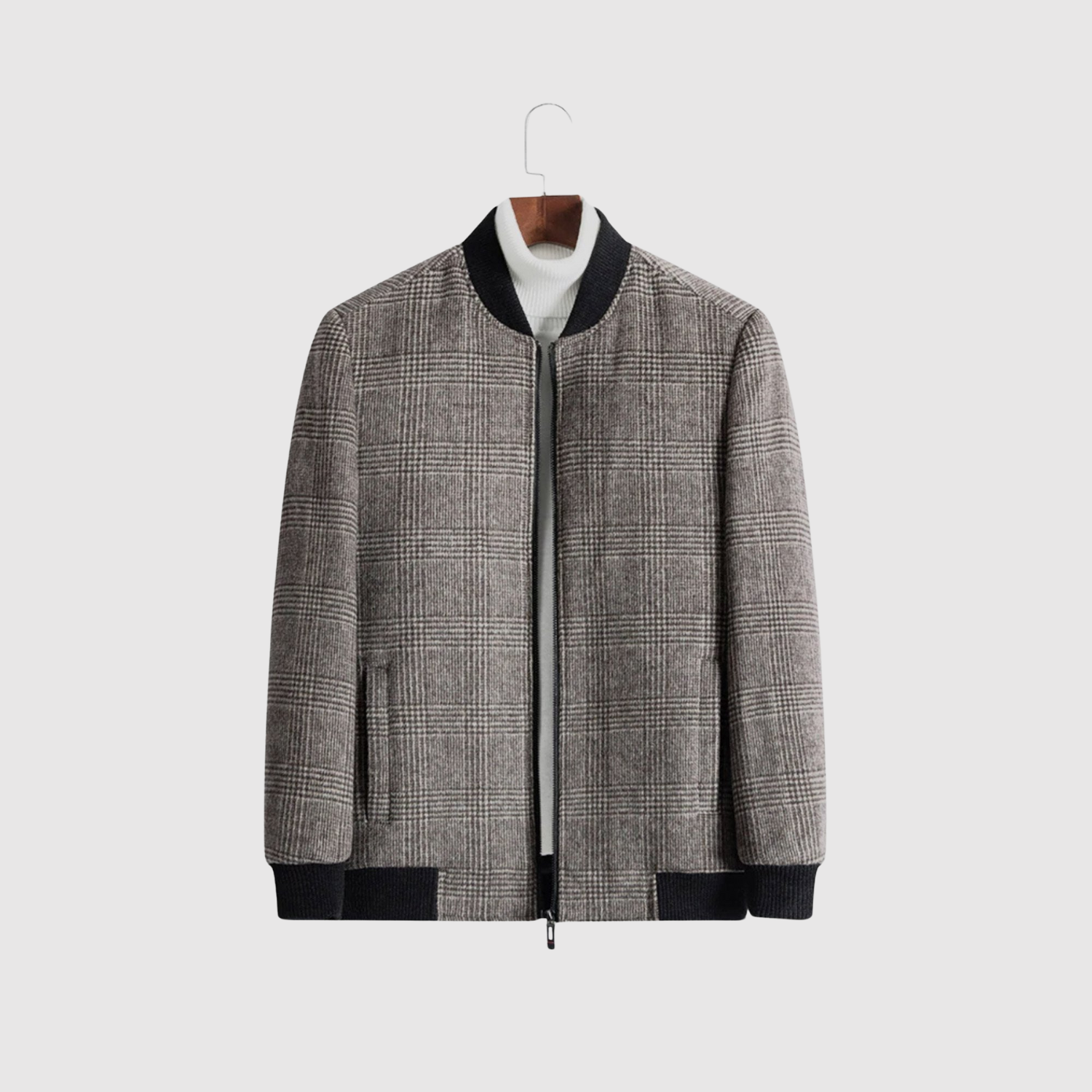 Šimon – Kostkovaná vlněná bunda s kapucí