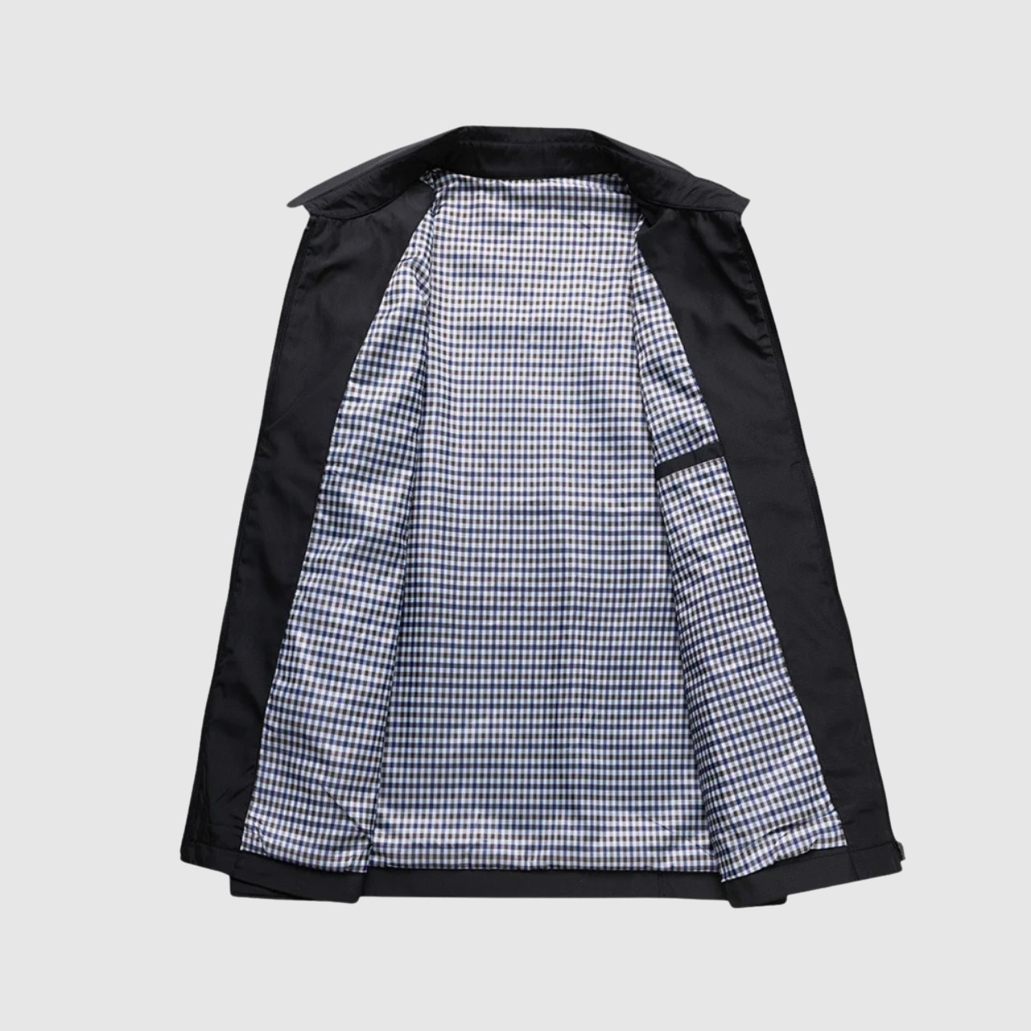 Vyrobeno z prodyšného materiálu, který chrání před větrem a slabým deštěm, je vhodné jak pro každodenní nošení, tak pro formálnější příležitosti.