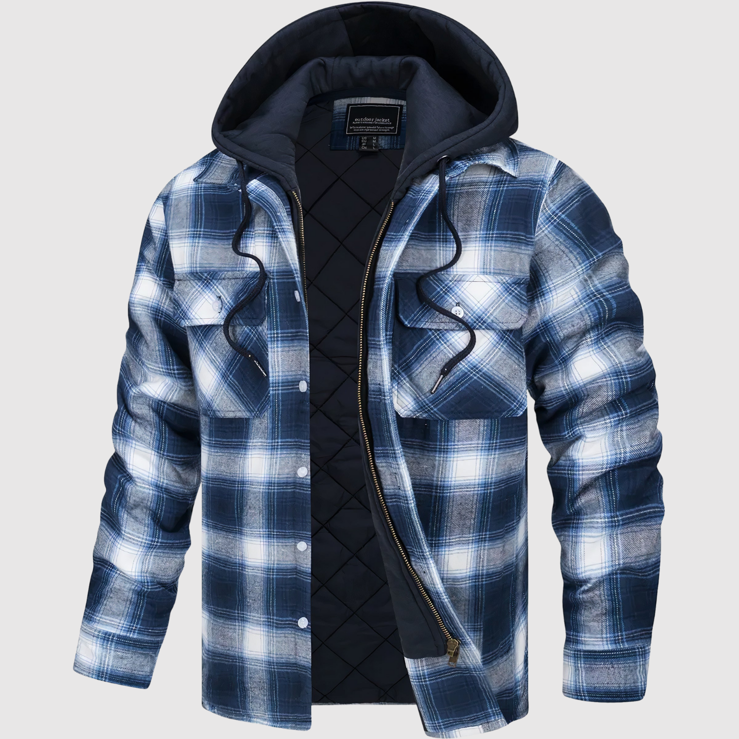 - Moderní design s kostkovaným vzorem a praktickou kapucí