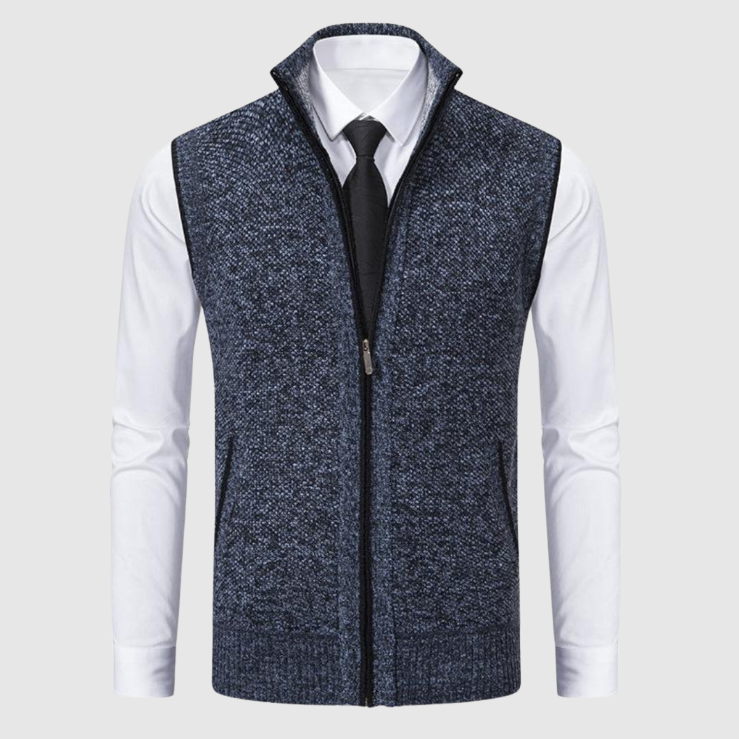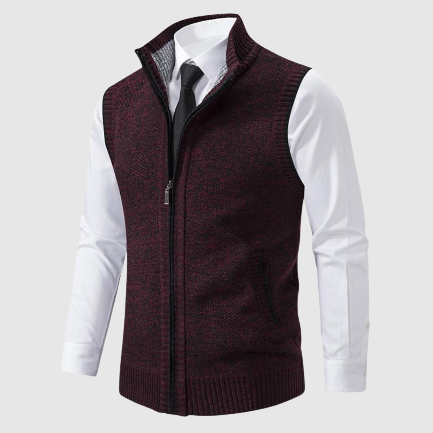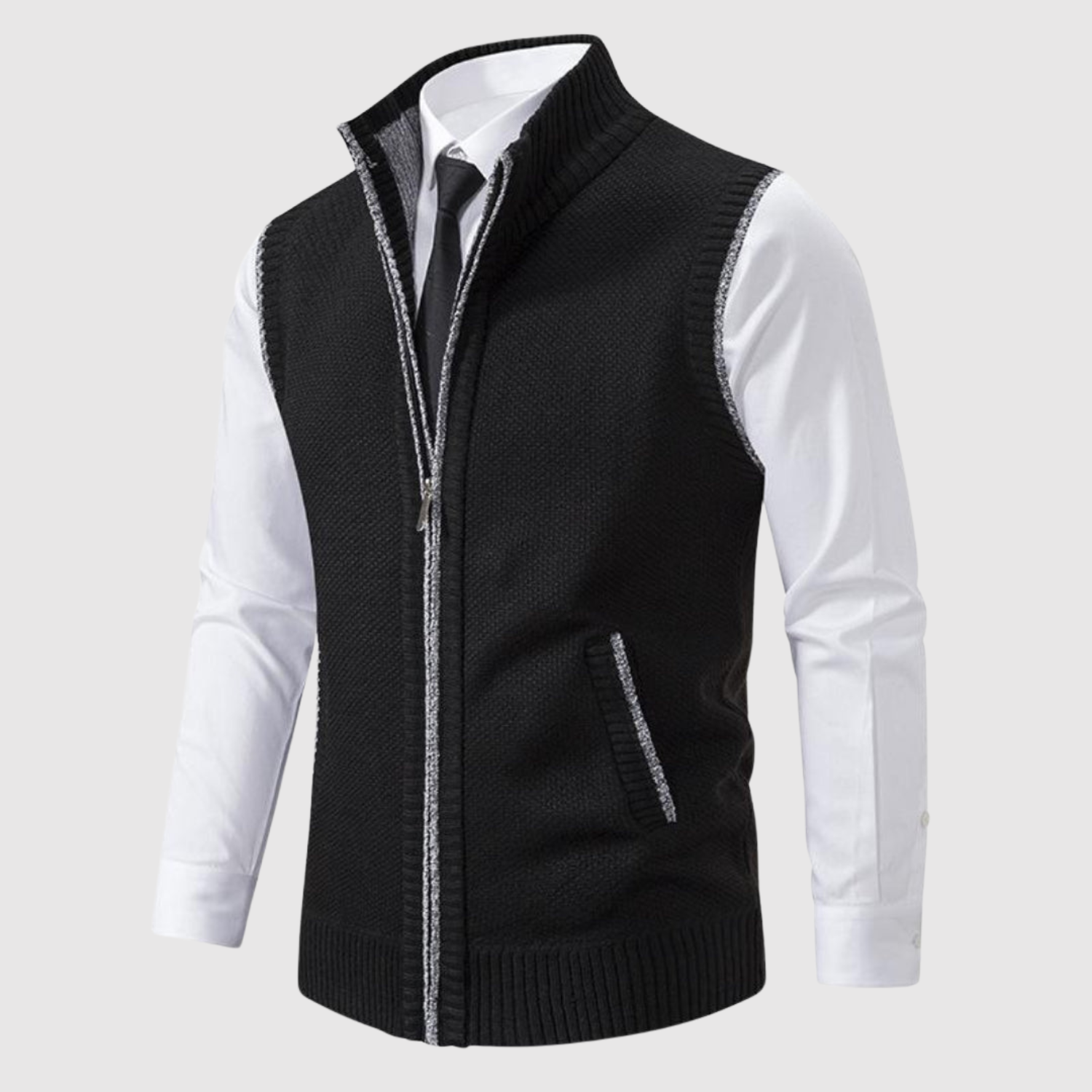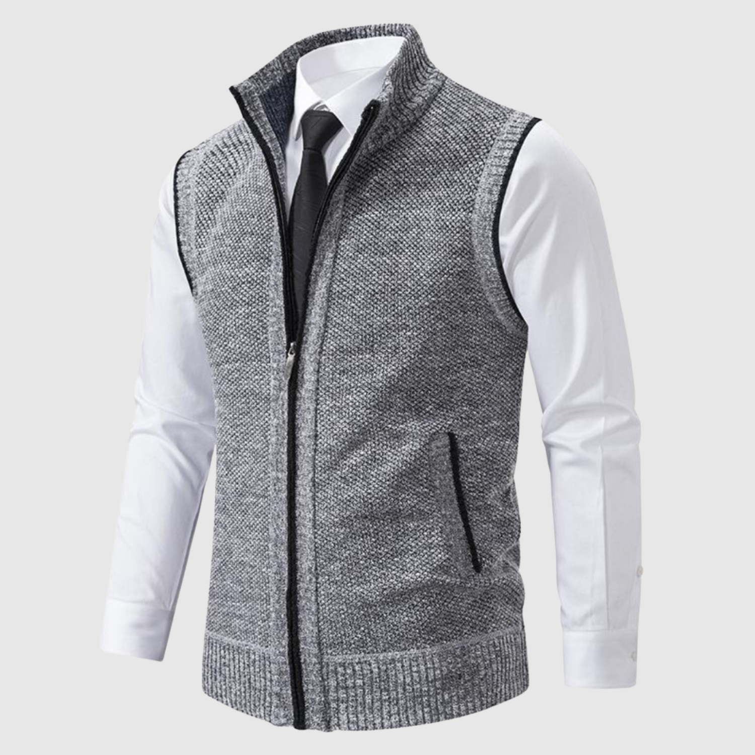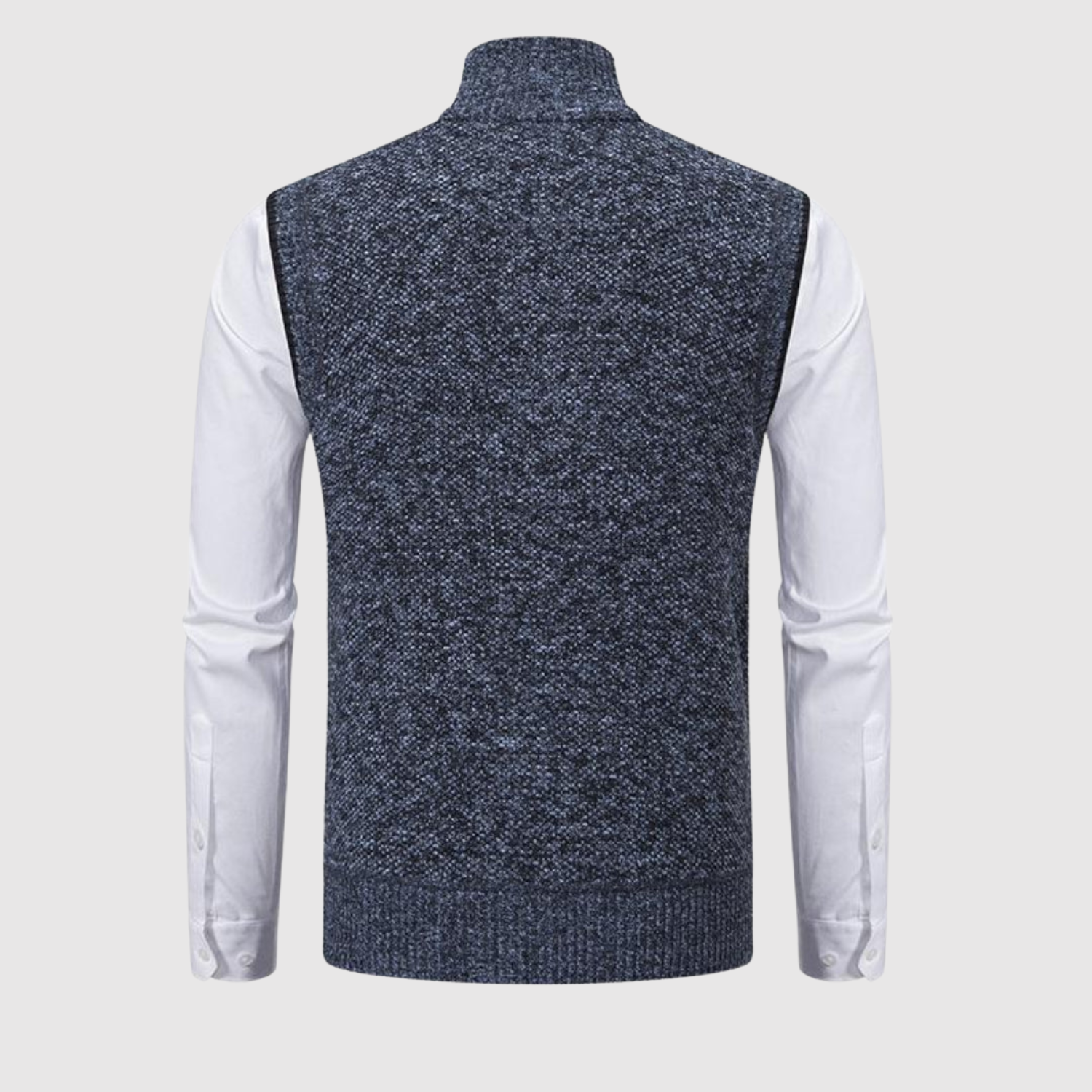 Tato pánská pletená vesta kombinuje elegantní vzhled s funkčností. Je ideální k nošení přes košili nebo lehké triko pro rafinovanější vzhled – skvělá volba jak do práce, tak pro neformální příležitosti.