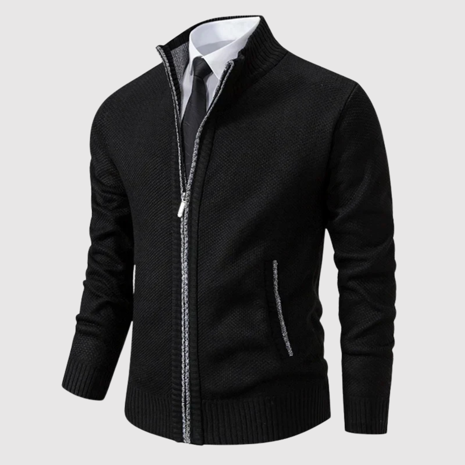 "Šimon - Pletený kardigan s zipem" can be rewritten as "Šimon - Pletený kardigan s praktickým zipem".