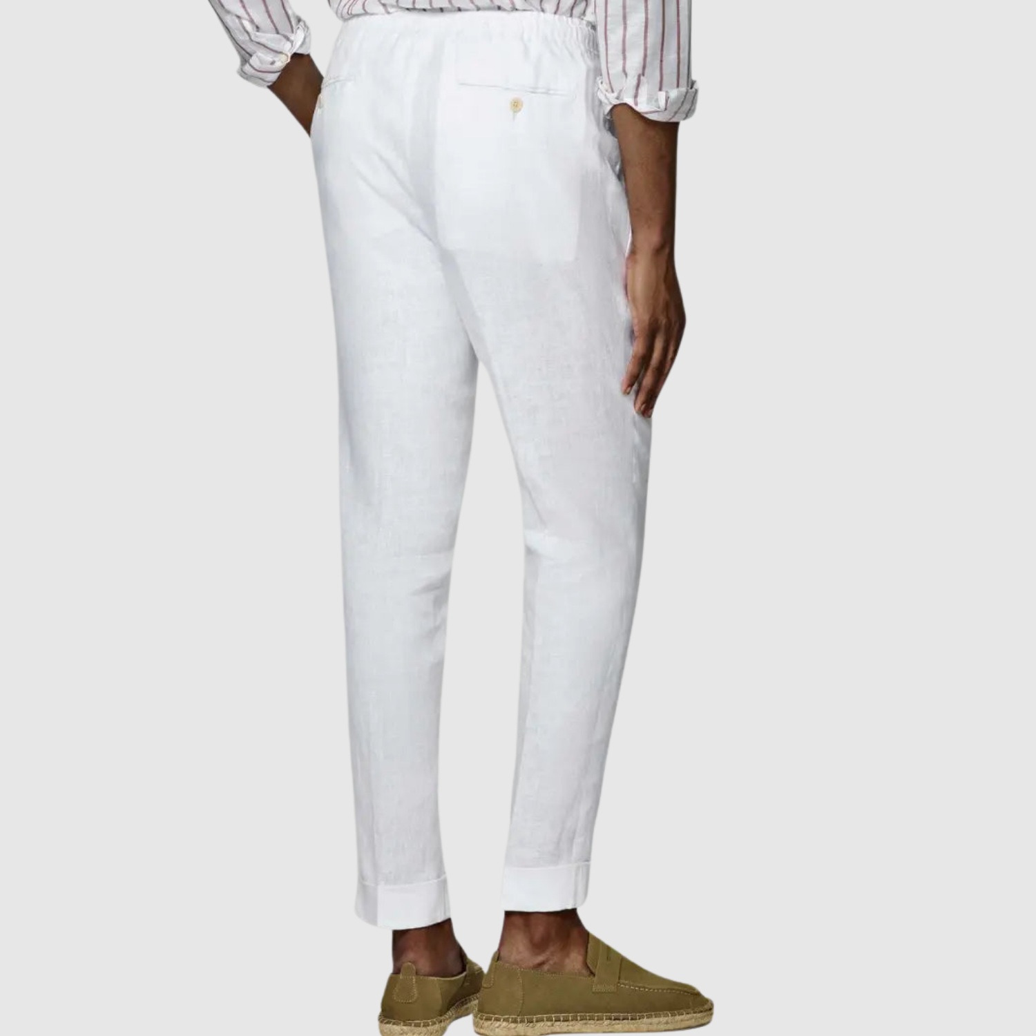 Leo – Klasické lněné kalhoty s pohodlným střihem" can be rewritten as: "Leo – Tradiční lněné kalhoty s komfortním střihem