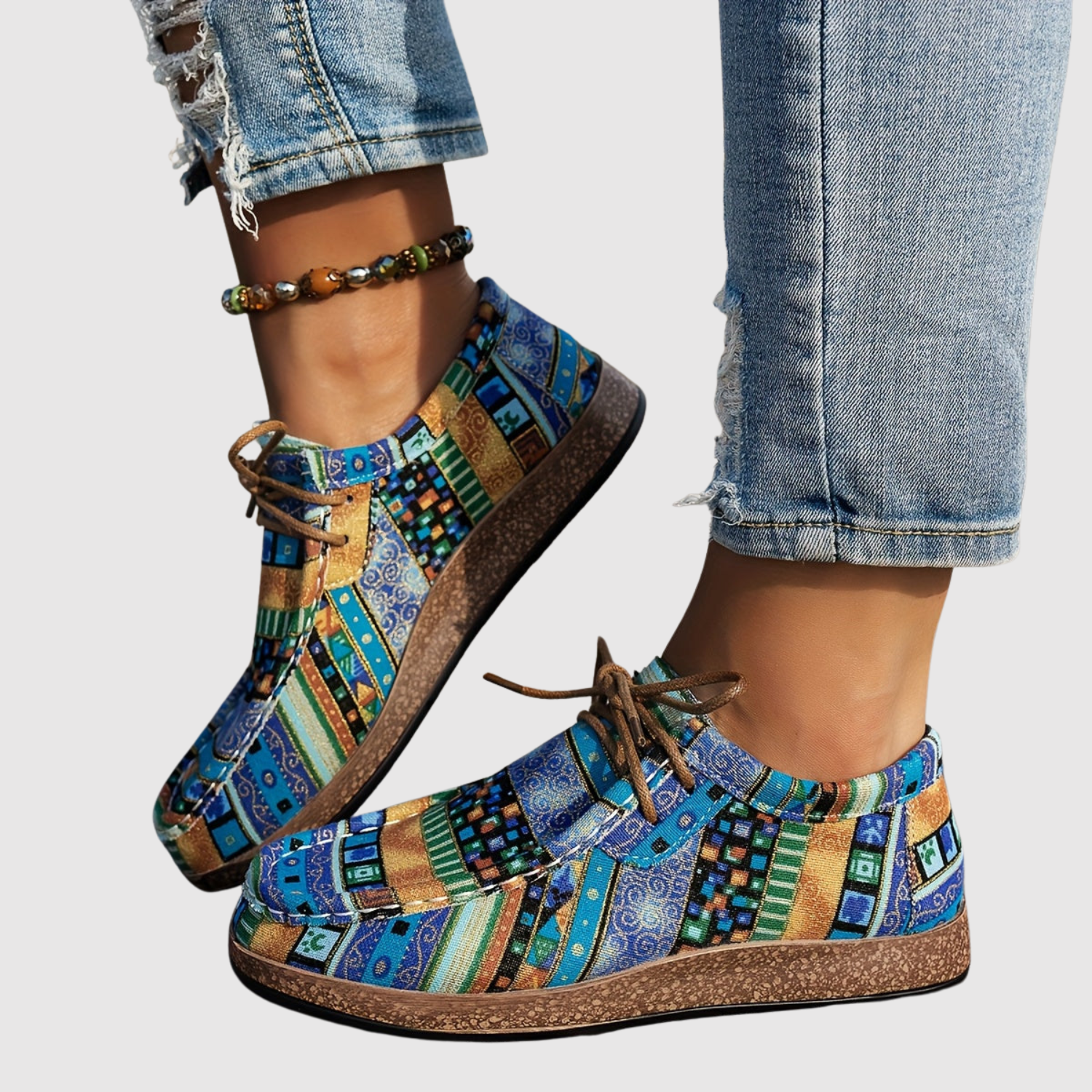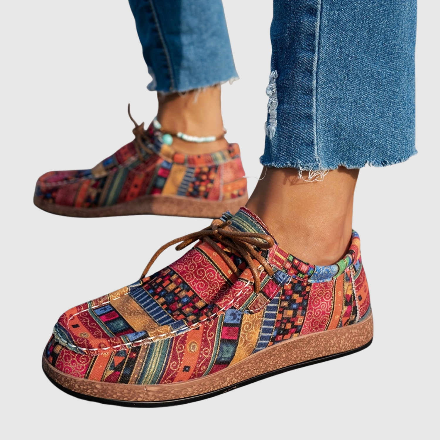 Tyto dámské boty kombinují jedinečný etnický vzor s pohodlným tvarem, ideální pro ty, které milují barvy a osobní styl. Flexibilní podrážka a lehká konstrukce je činí ideálními pro každodenní nošení a volný čas – nezbytnost pro každého příznivce boho stylu.