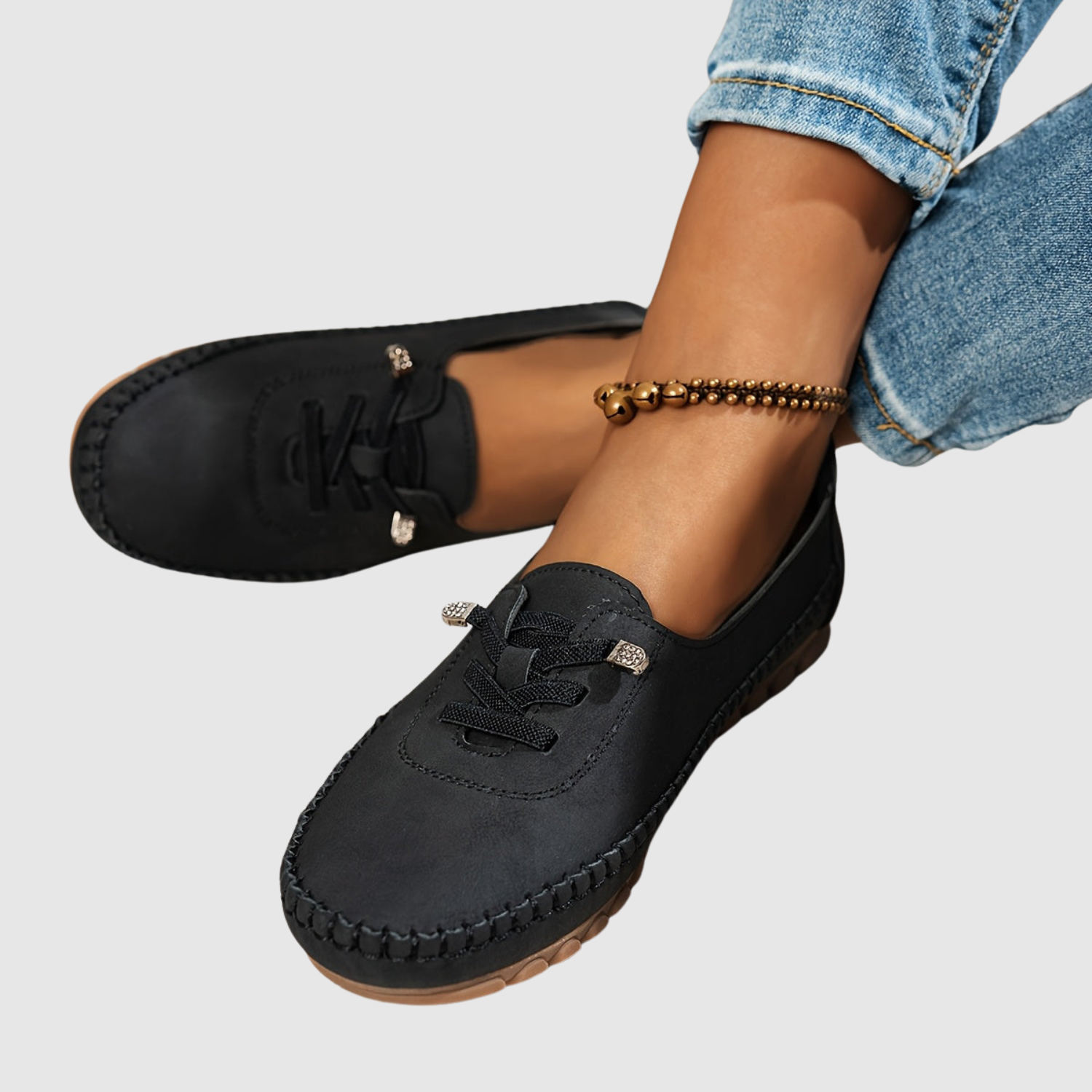 Tyto mokasíny kombinují komfort a vytříbenost, ideální pro dlouhé dny venku. Měkká podrážka a flexibilní design zajišťují pohodlí při každém kroku, zatímco mašle dodává jemný ženský akcent.