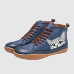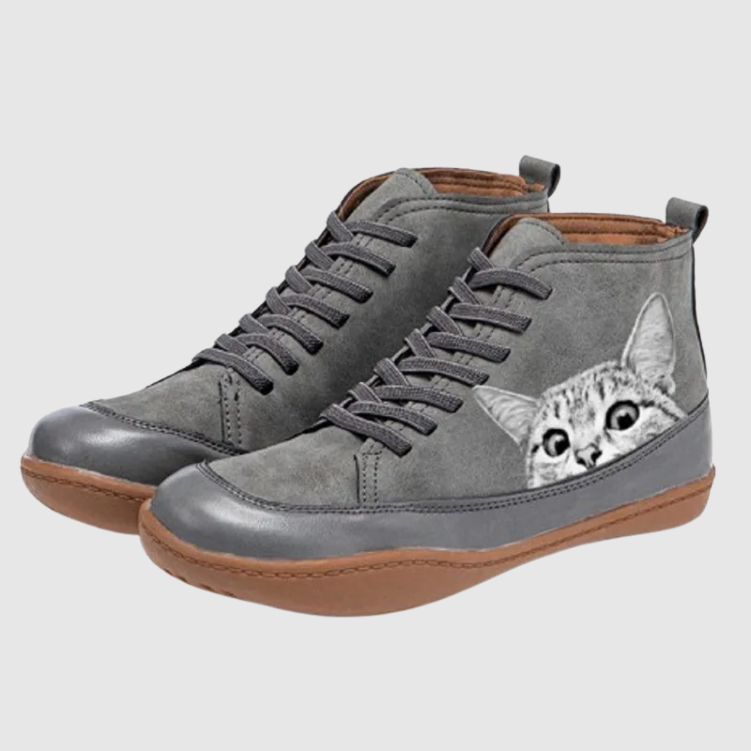 Tyto pohodlné boty z měkké umělé kůže kombinují zábavný kočičí motiv s každodenním komfortem. Ideální pro volný čas a každodenní nošení – atraktivní prvek pro každého milovníka zvířat.