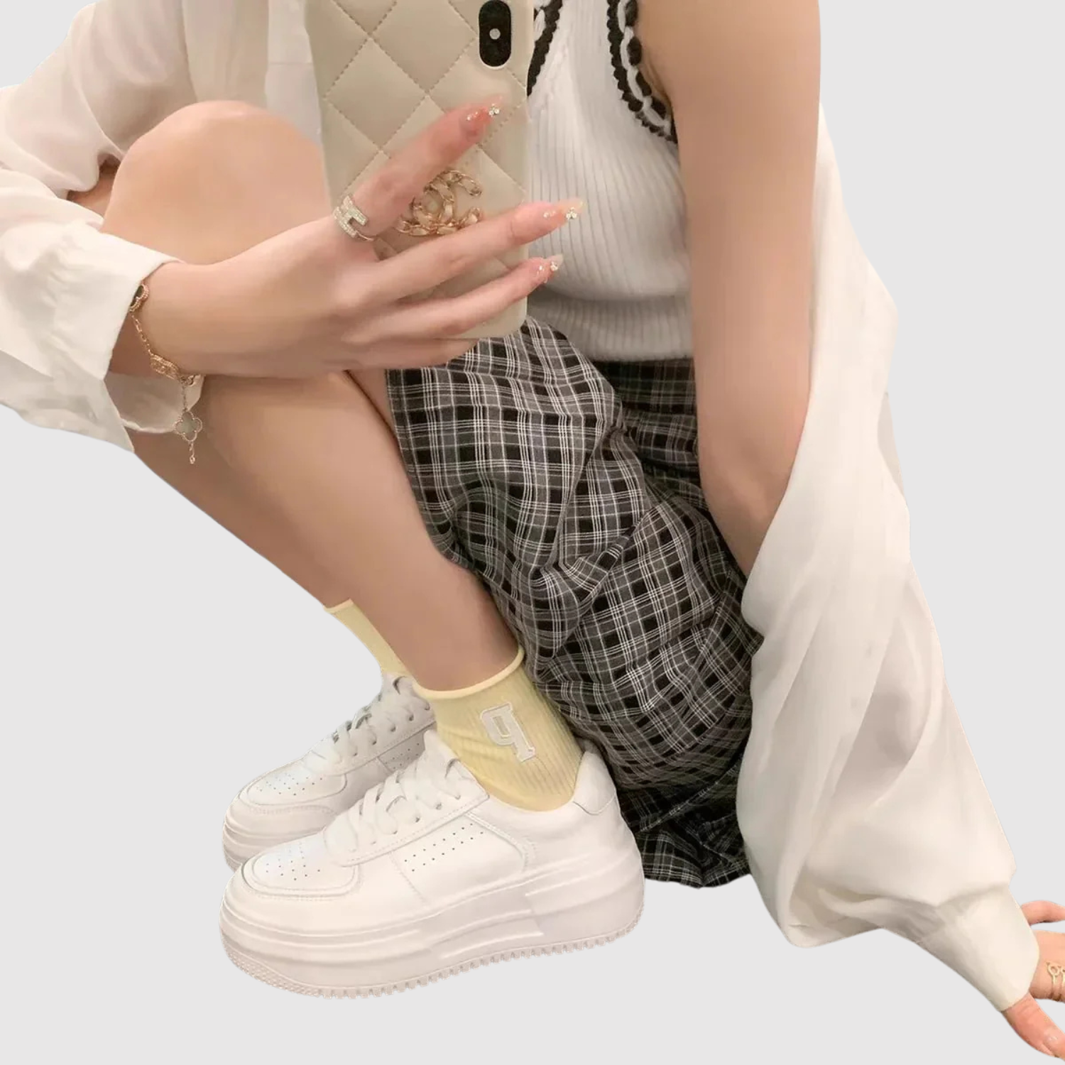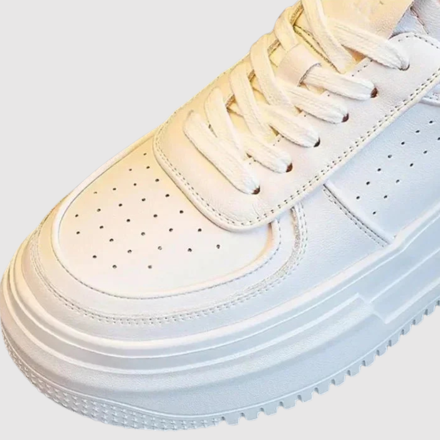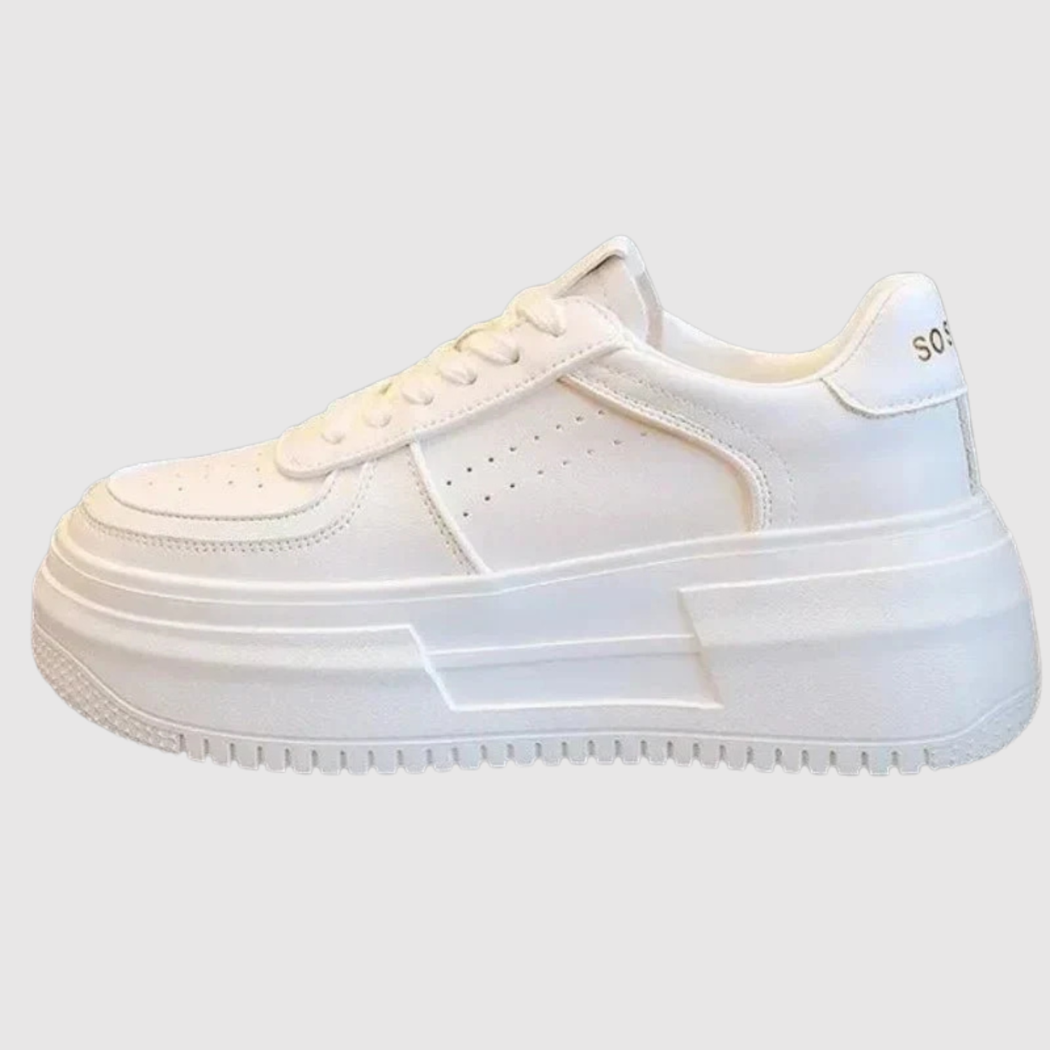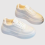 Tyto bílé tenisky na platformě nejenže dodávají výšku, ale také nabízejí svěží, minimalistický vzhled, který se hodí k jakémukoli oblečení – od džínů po šaty.