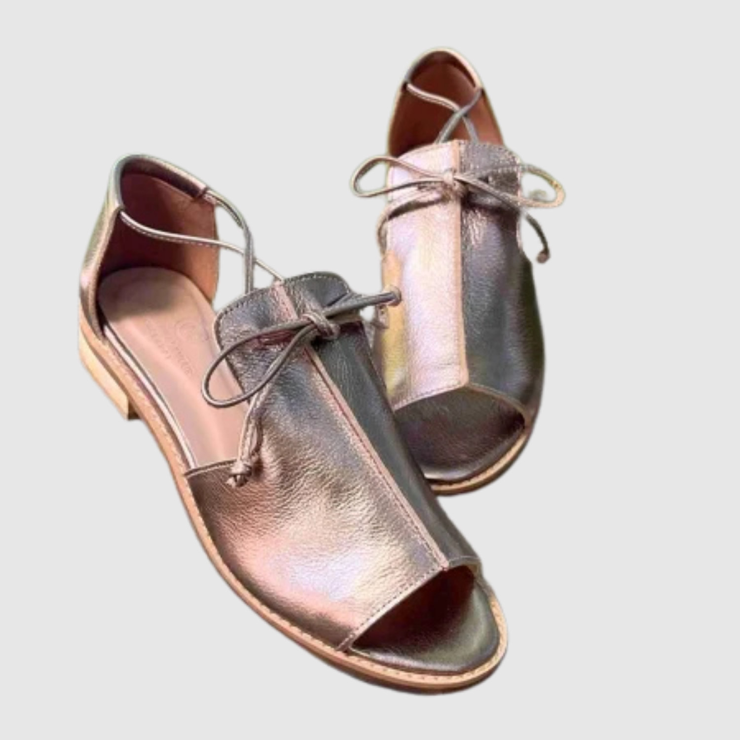 Lara – Elegantní metalické sandály s stylovým vázáním