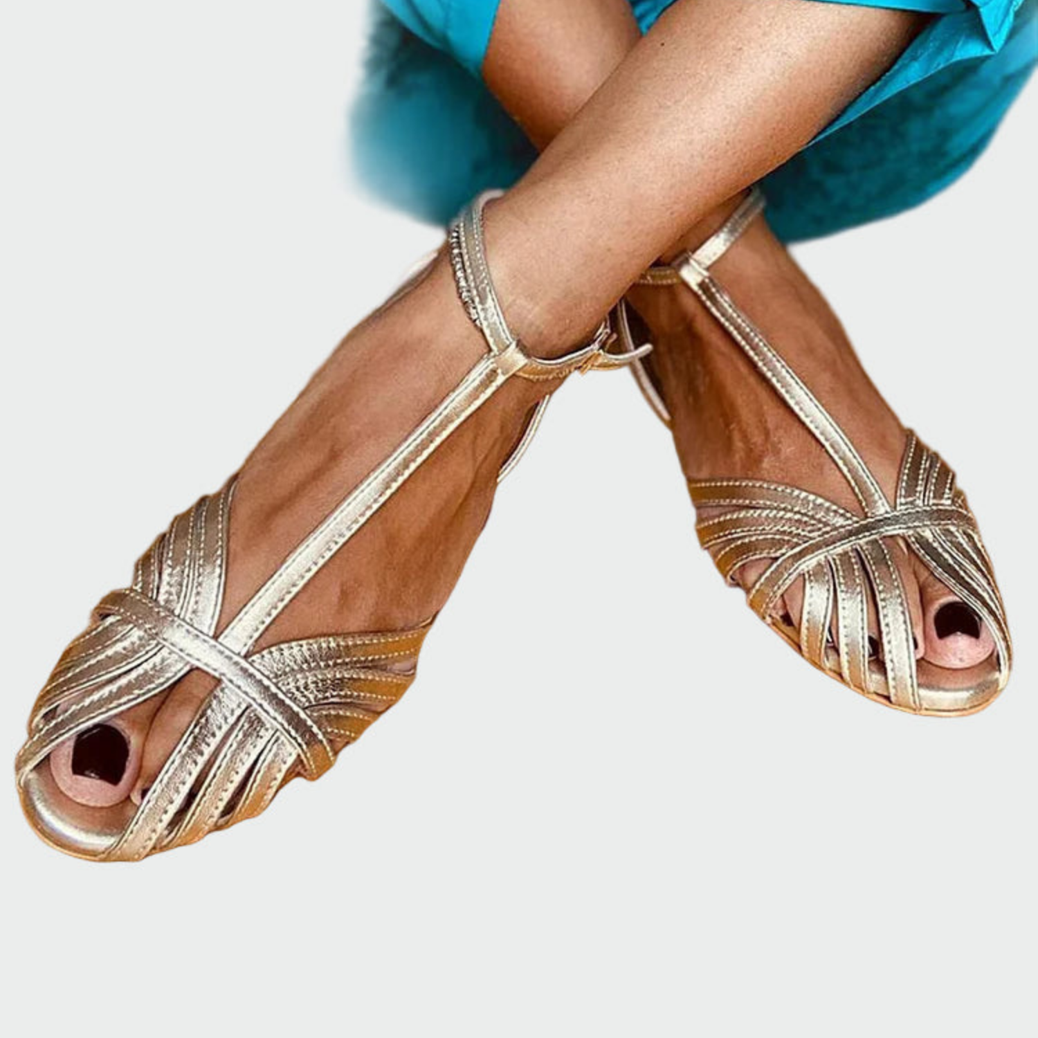 Lara – Elegantní metalické sandály s stylovým vázáním