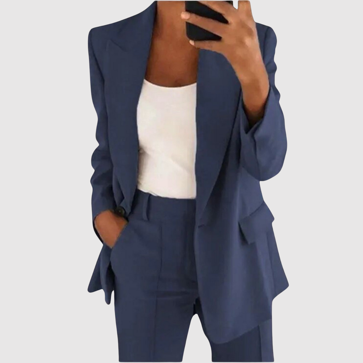 Tento overal kombinuje klasické střihy s moderním akcentem. S čistým designem a pohodlným střihem je ideální do kanceláře, na schůzky nebo formální akce. Tkanina krásně splývá a dodává elegantní, stylový vzhled.