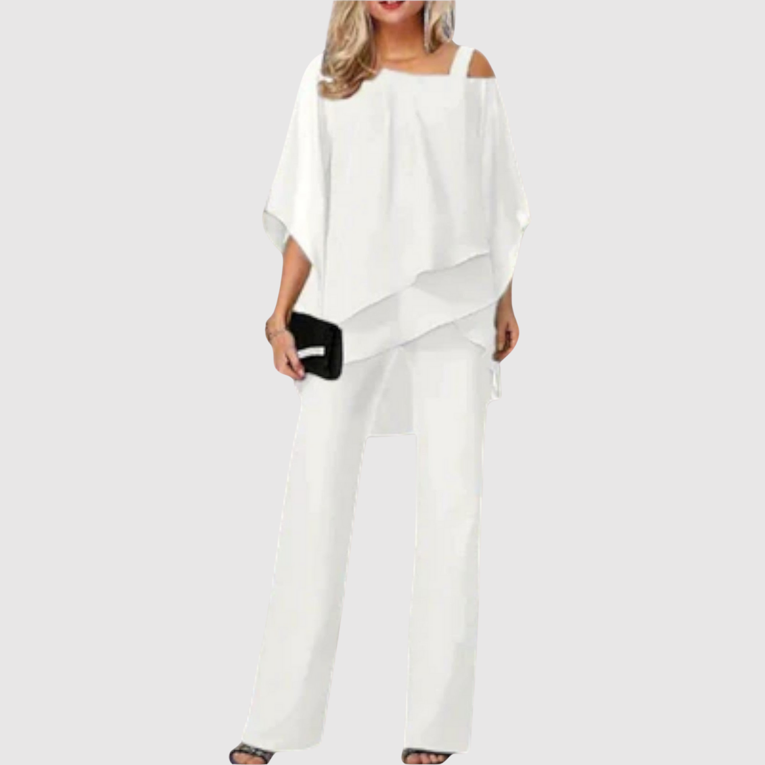 Tento overal kombinuje komfort a rafinovanost s jeho volným střihem a jemnou tkaninou. Perfektní pro práci a večerní akce, kde chcete vypadat jak neformálně, tak elegantně. Nezbytný kousek pro moderní šatník.
