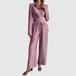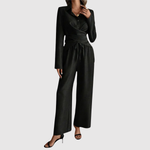 Objevte náš dvoudílný komplet, skládající se z vázací blůzy a odpovídajících kalhot, který dokonale spojuje styl a pohodlí. Materiál krásně splývá a vytváří lichotivou siluetu, ideální pro každodenní i slavnostní příležitosti.