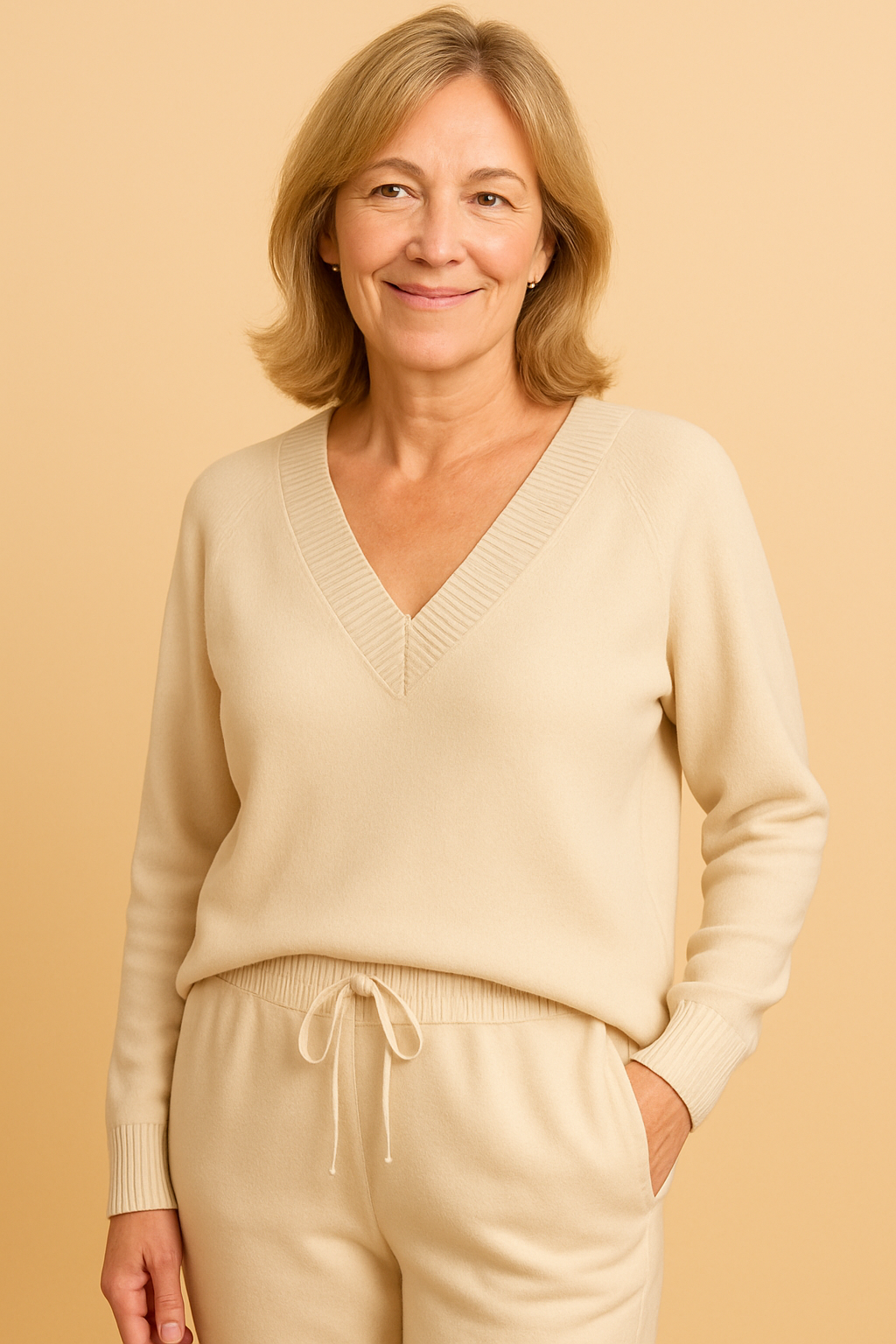 Sada Nelinha spojuje jemnost a styl pro ženy, které si cení pohodlí, aniž by ztratily eleganci. Skládá se z dlouhého rukávu s výstřihem do V a kalhot s elastickým pasem, tato sada jemně zjemňuje oblast břicha a nabízí lichotivou siluetu. Ideální pro odpočinek doma i malé výlety, udržuje vás elegantní, sebevědomou a pohodlnou po celý den.