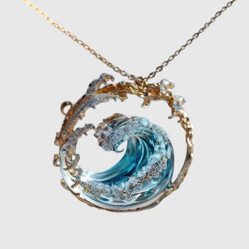 Amélie – Náhrdelník 'Mořská vlna' s transparentním modrým smaltem