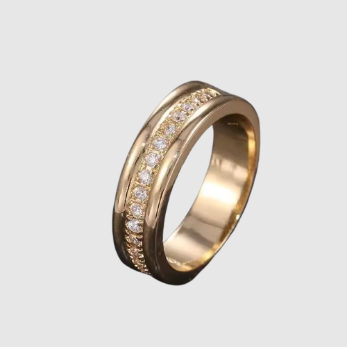 Valérie – Zlatý prsten s dvojitou linií a krystaly" can be rewritten as: "Valérie – Dvojitý zlatý prsten s krystaly
