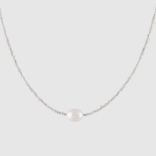 Tento náhrdelník kombinuje vytříbenou jednoduchost s rafinovaným detailem. Perlové nitě dodávají jemný lesk, zatímco tmavý kámen uprostřed vytváří kontrast a harmonii.