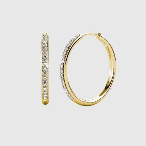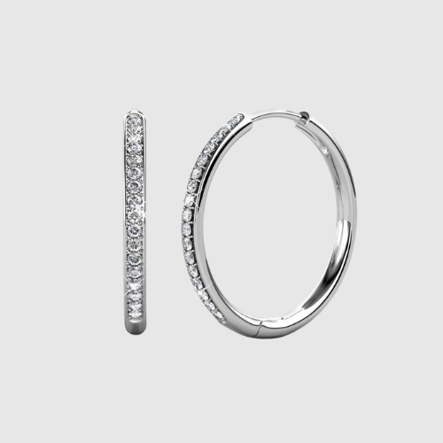 Tyto kruhové náušnice kombinují čistý tvar s jemnými lesklými krystaly. Perfektní volba pro stylový a vytříbený vzhled, ať už je den nebo večer.