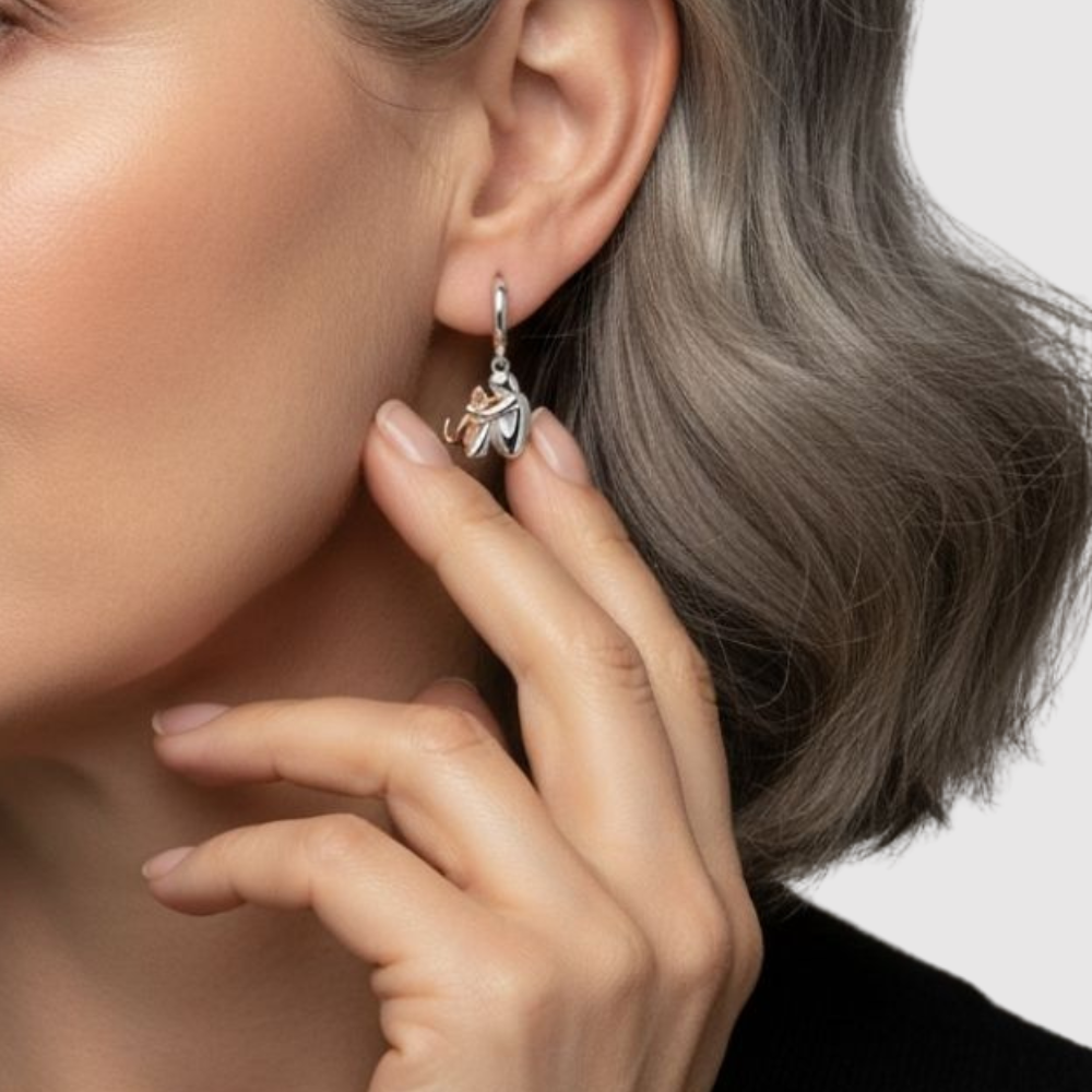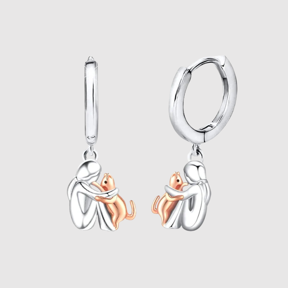 Objevte elegantní náušnice, které zachycují něžný okamžik mezi dívkou a její kočkou – symbol čisté náklonnosti a přátelství, jež trvá celý život. Nadčasový design je jemný, ale výrazný, ideální pro každého, kdo nosí svou kočku v srdci.
