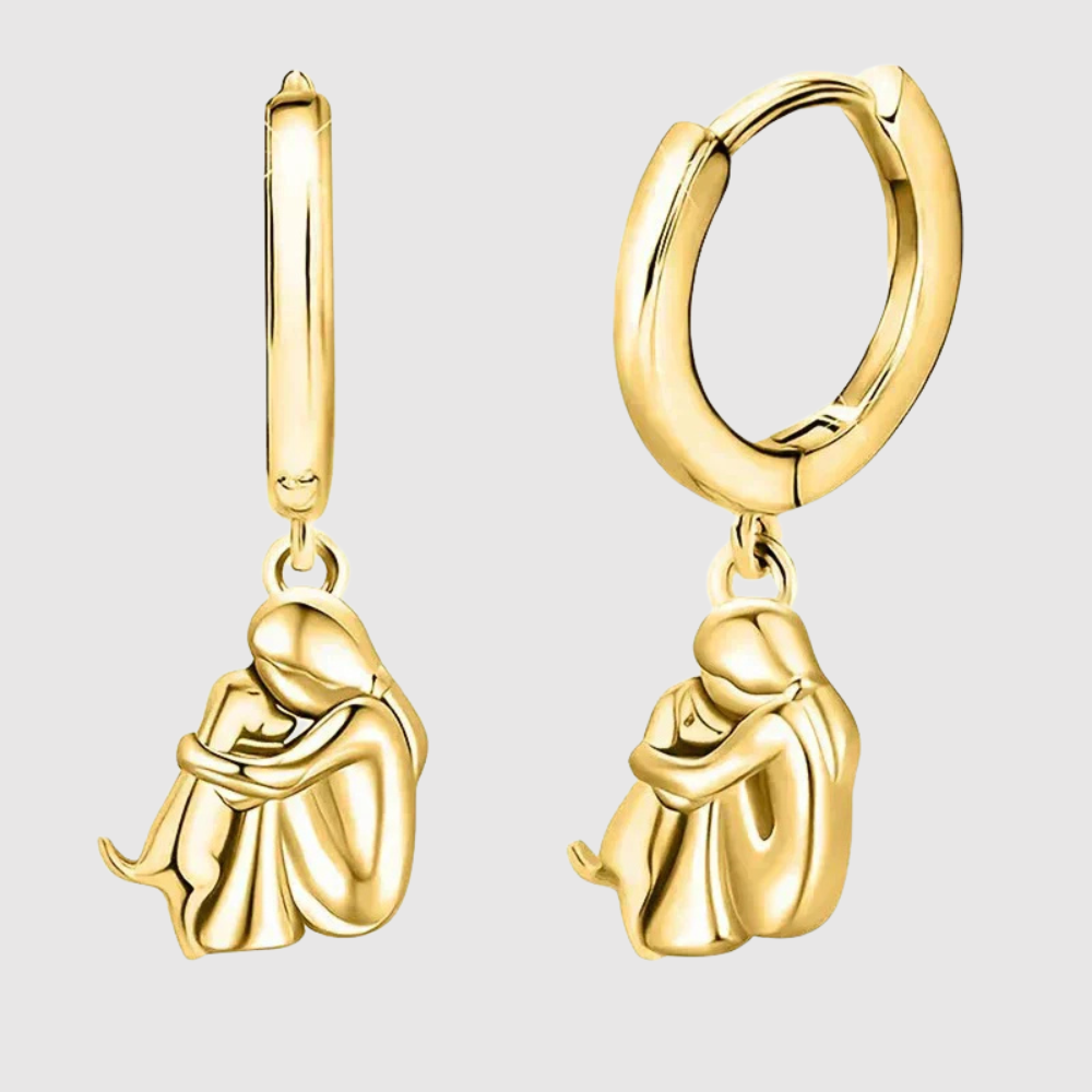 Objevte naše elegantní náušnice, které zobrazují dívku objímající svého psa. Tyto šperky vyjadřují čisté pouto, něhu a bezpodmínečnou lásku. S nadčasovým designem, který dodává jemný, ale výrazný efekt, jsou ideální pro milovníky zvířat a pro ty, kteří nosí své mazlíčky v srdci.