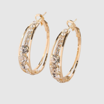Tyto elegantní náušnice typu kruh kombinují zlatistý lesk a řadu krystalů, které zachycují světlo při každém pohybu. Vhodné pro každodenní nošení i zvláštní příležitosti, navrženy tak, aby podtrhly vaši ženskost a sebevědomí.