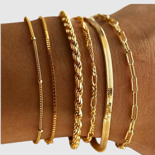 Tato sada jemných náramků spojuje klasickou eleganci a moderní styl. Perfektní volba pro každý outfit – od každodenního po večerní.