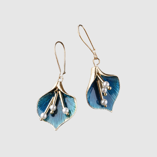 Elisa – Náušnice s perlami a modrou smaltovou úpravou