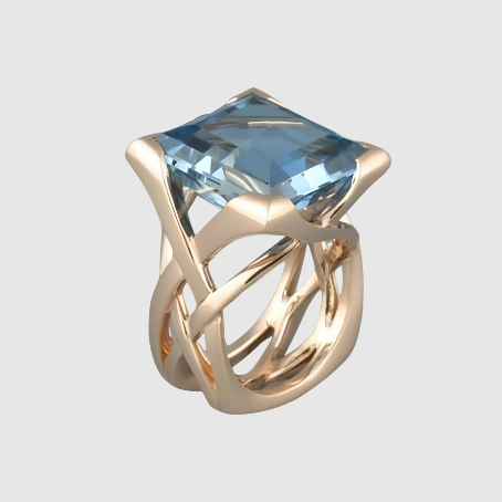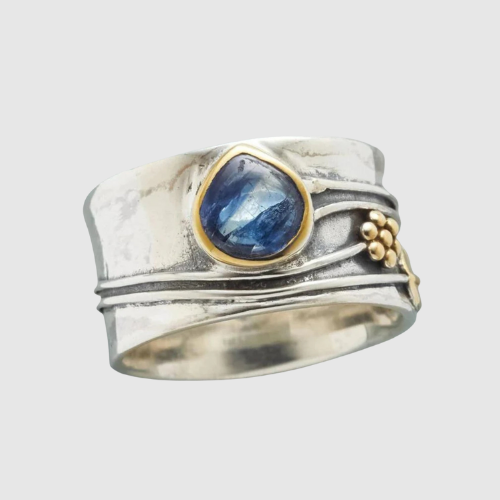 Valérie – Zlato prsten s velkým modrým drahokamem