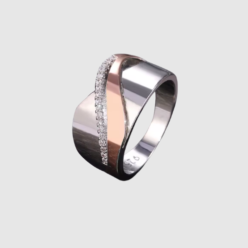 Valérie – Dvoubarevný prsten s krystalem a moderním stylem